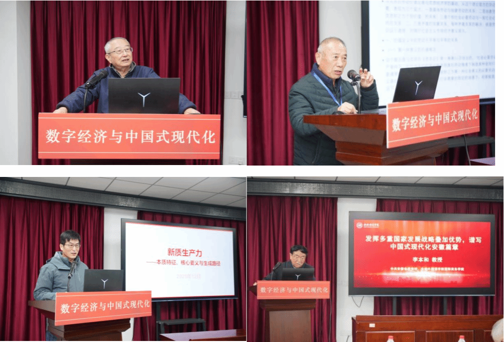 安庆师范大学yl88858永利集团汪时珍教授主持主旨报告环节,报告包括:《新质生产力的几个基本理论问题》(安徽大学荣兆梓教授)、《论马克思的价值论蕴含的劳动不平等与平等的矛盾关系》(安徽大学马怀礼教授)、《新质生产力——本质特征、核心要义与生成路径》(安徽财经大学李刚教授)、《智能决策方法及其应用》(安徽师范大学刘树利教授)、《发挥多重国家发展战略叠加优势,谱写中国式现代化安徽篇章》(安徽省委党校李本和教授)、《毛泽东政治经济学方法论的闪光点》(淮北师范大学张作云教授)、《社会主义的技术创新——基于<资本论>的规范研究》(85588永利集团副校长周端明教授)。