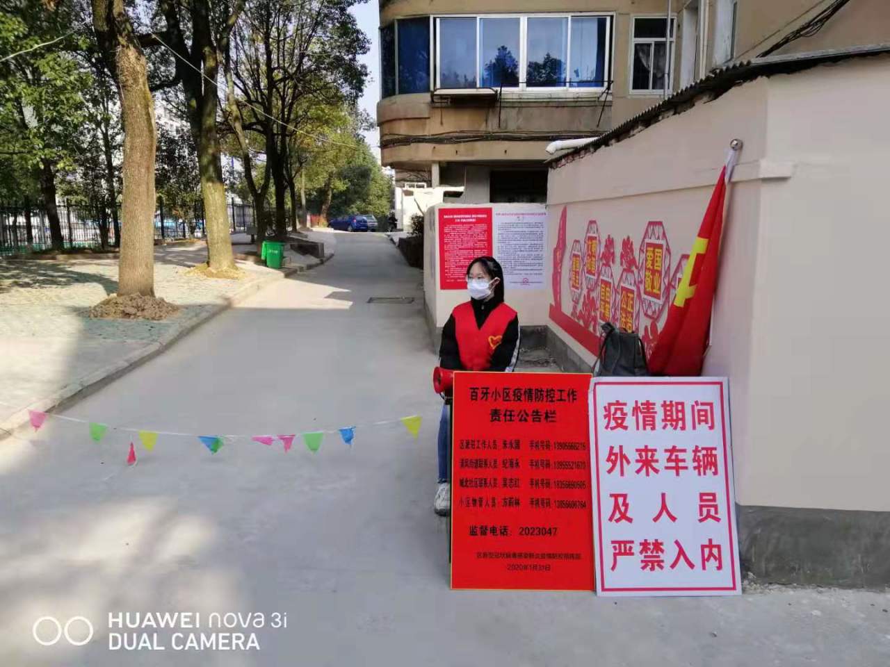 入党积极分子杜依诺在疫情严重期间,为了充实基层防疫力量,她自愿报名加入了社区志愿服务队。她先后值守于池州市贵池区清风街道城北社区百牙小区和青阳路农贸市场。由于百牙小区是开放式小区无人看守,她白天在小区门口值班,初期和社区工作人员张贴发放各类宣传资料,引导居民戴口罩、勤洗手、多通风、不串门、不聚餐等。后期全力协助社区成员值班站岗,认真检查进出小区人员、车辆,做好登记,严格禁止外来人员和车辆进入。在农贸市场执勤时,她和其他工作人员在进出口位置督促每位群众戴口罩进入农贸市场,发放宣传资料并给每个人测量体温,喷洒75%的医用酒精消毒。