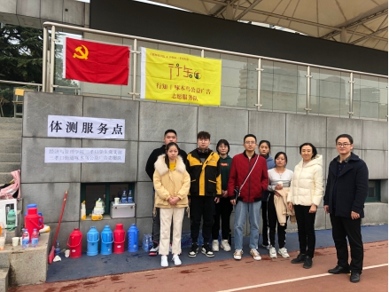 2019年12月15日,三孝口校区进行了体质健康测试。yl88858永利集团三孝口学生党支部联合三孝口街道啄木鸟公益广告志愿队、16级酒店管理班和18级人力资源管理班组成党员志愿者体测服务点。今年的体测服务点,在体测的整个过程中为参加体测的同学们提供后勤服务,准备了热水、矿泉水、纸巾、糖果等物品在同学们需要之时予以提供,也时刻准备着为身体不适的同学及时提供送医服务,为同学们在进行体质测试时提供良好的安全保障。