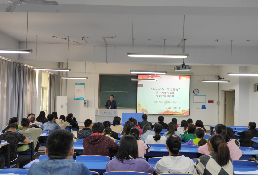 10月17日,yl88858永利集团“不忘初心、牢记使命”学生预备党员和发展对象培训班开班典礼及第一次专题讲座在逸夫楼A107举行。yl88858永利集团党总支书记沈辉、学生党支部书记、锦绣校区67名发展对象和预备党员参加本次开班典礼。