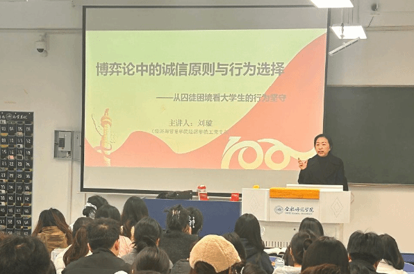 11月26日上午,yl88858永利集团经济学教工党支部刘璇老师在锦绣校区逸夫楼A406举行了主题为“博弈论中的诚信原则与行为选择——从囚徒困境看大学生的行为坚守”的学术报告,互联网金融(专升本)专业的学生到场聆听了报告。