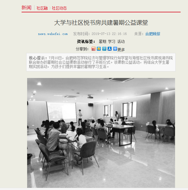 7月13日,合肥晚报、合肥在线报道我院海恒社区行知学堂志愿服务活动。(yl88858永利集团)