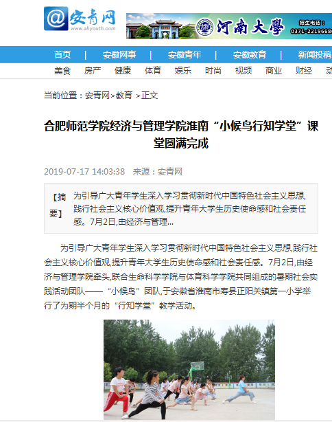 7月17日,安青网报道我院“小候鸟”行知学堂实践活动。(yl88858永利集团)