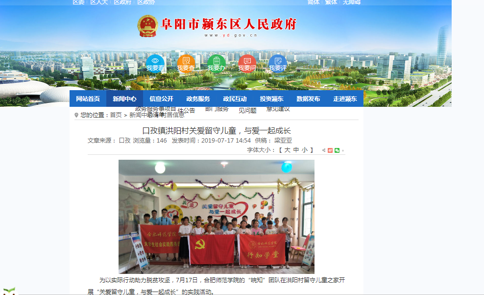 7月17日,阜阳市颍东区人民政府官网再次报道我院“皖知”行知学堂实践活动。(yl88858永利集团)