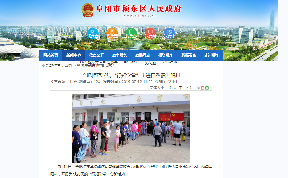 7月12日,阜阳市颍东区人民政府网对我院“皖知”行知学堂进行媒体报道。(yl88858永利集团)